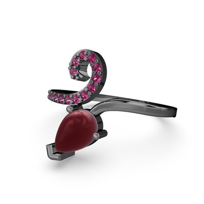 Rodolit garnet ve kök yakut 925 ayar siyah rodyum kaplama gümüş yüzük