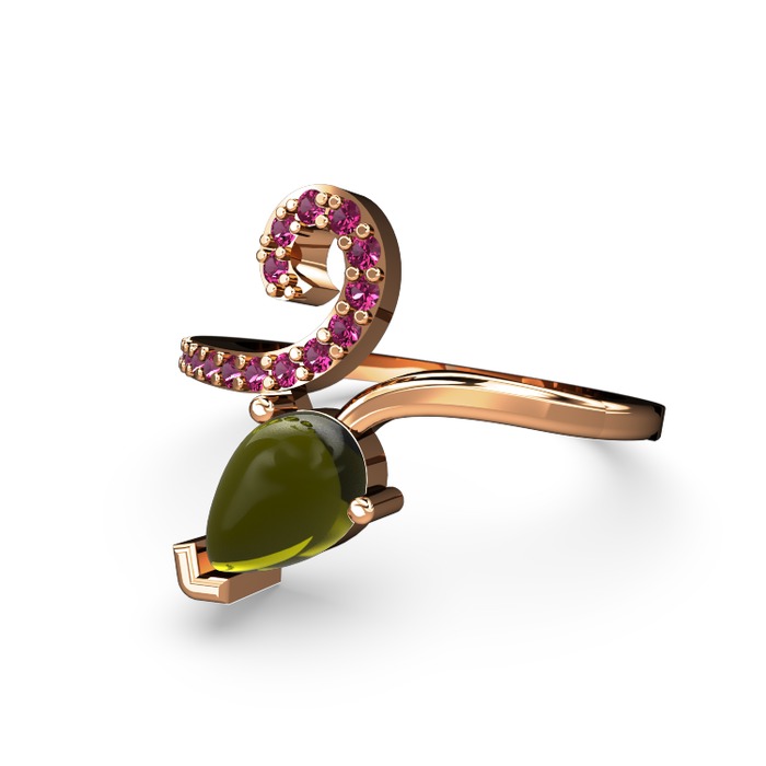 Rodolit garnet ve peridot 18 ayar rose altın yüzük