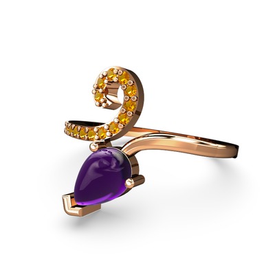 Sitrin ve ametist 8 ayar rose altın yüzük