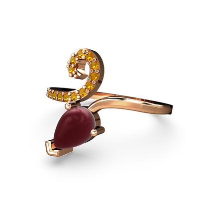 Sitrin ve kök yakut 925 ayar rose altın kaplama gümüş yüzük