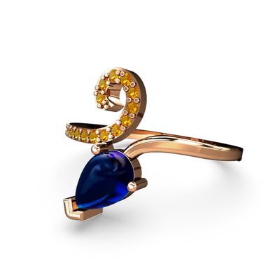 Sitrin ve lab safir 925 ayar rose altın kaplama gümüş yüzük