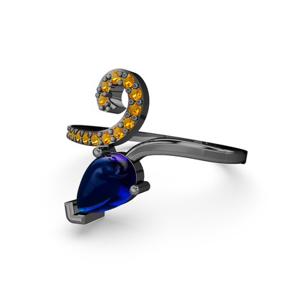Sitrin ve lab safir 925 ayar siyah rodyum kaplama gümüş yüzük