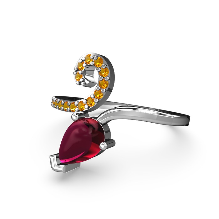 Sitrin ve rodolit garnet 18 ayar beyaz altın yüzük
