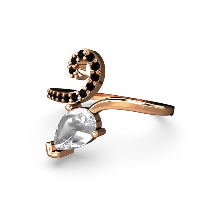 Siyah zirkon ve beyaz zirkon 925 ayar rose altın kaplama gümüş yüzük
