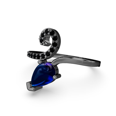 Siyah zirkon ve lab safir 925 ayar siyah rodyum kaplama gümüş yüzük