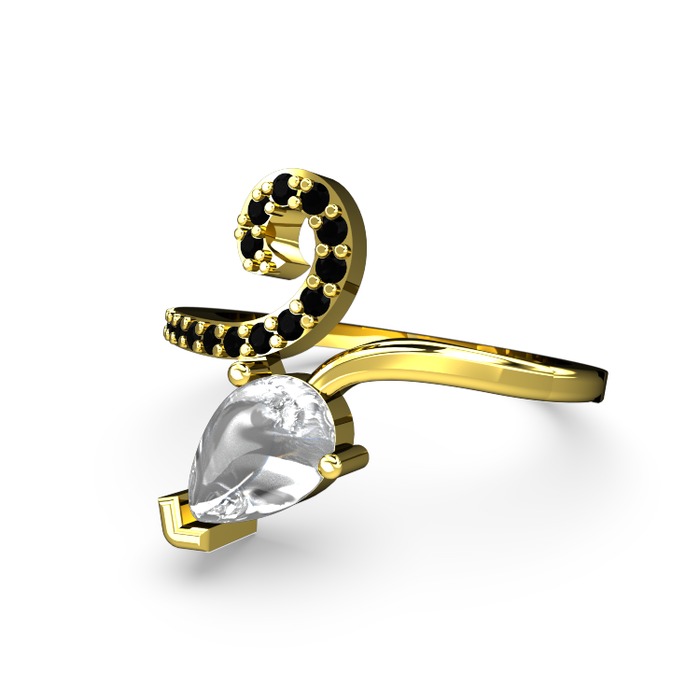 Siyah zirkon ve swarovski 14 ayar altın yüzük