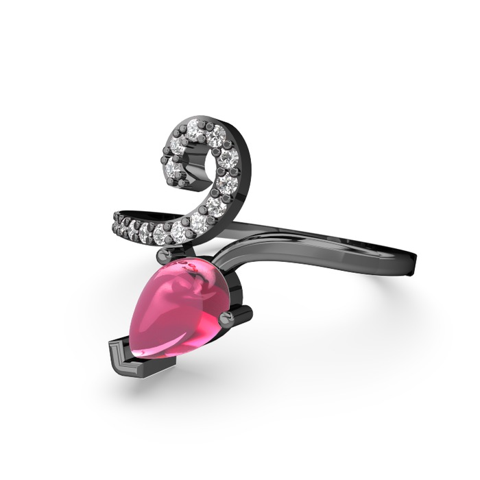 Swarovski ve pembe kuvars 925 ayar siyah rodyum kaplama gümüş yüzük