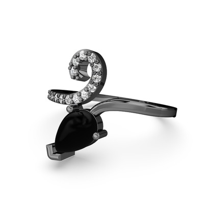 Swarovski ve siyah zirkon 925 ayar siyah rodyum kaplama gümüş yüzük