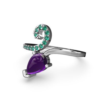 Yeşil kuvars ve ametist 8 ayar beyaz altın yüzük