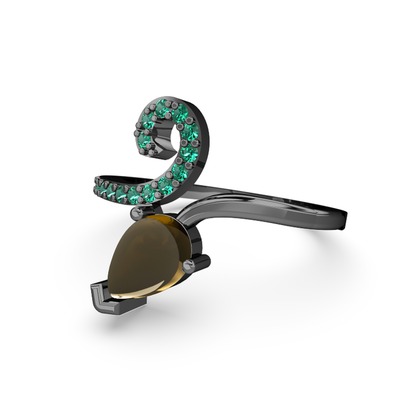 Yeşil kuvars ve dumanlı kuvars 925 ayar siyah rodyum kaplama gümüş yüzük