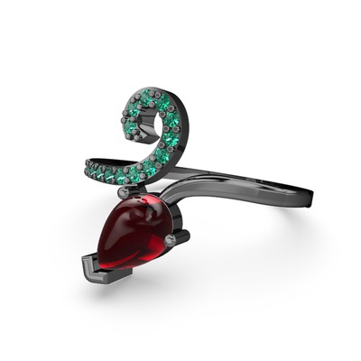 Yeşil kuvars ve garnet 925 ayar siyah rodyum kaplama gümüş yüzük