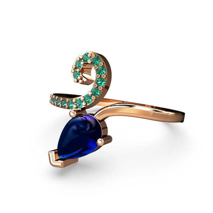 Yeşil kuvars ve lab safir 8 ayar rose altın yüzük