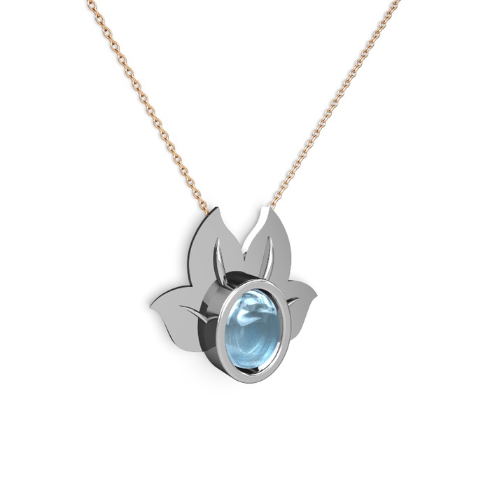 Akuamarin 8 ayar beyaz altın kolye (40 cm rose altın rolo zincir)