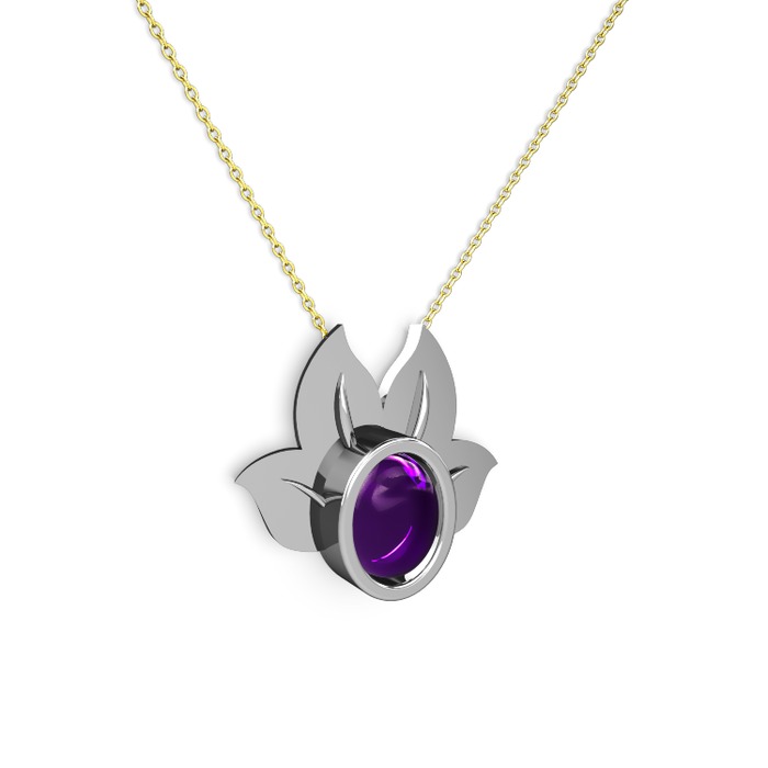 Ametist 14 ayar beyaz altın kolye (40 cm gümüş rolo zincir)