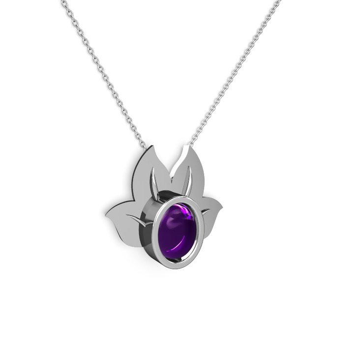 Ametist 925 ayar gümüş kolye (40 cm beyaz altın rolo zincir)