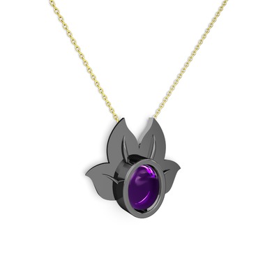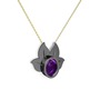 Ametist 925 ayar siyah rodyum kaplama gümüş kolye (40 cm altın rolo zincir)