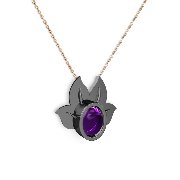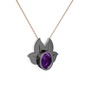 Ametist 925 ayar siyah rodyum kaplama gümüş kolye (40 cm rose altın rolo zincir)