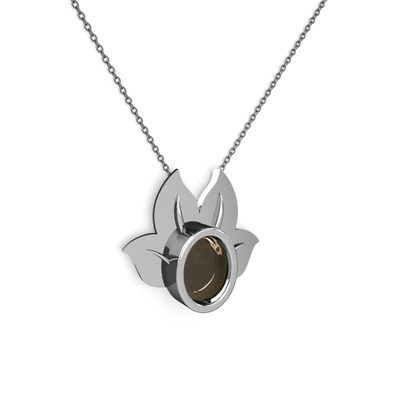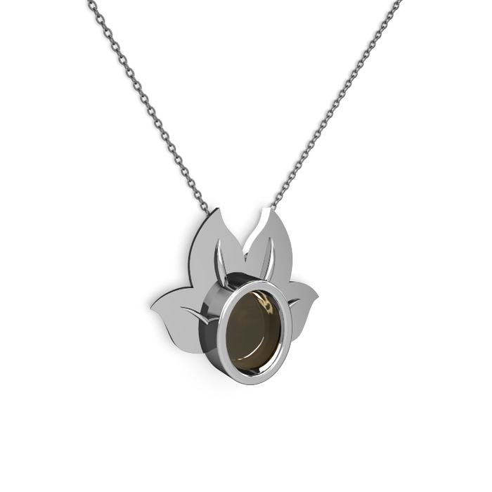 Dumanlı kuvars 8 ayar beyaz altın kolye (40 cm gümüş rolo zincir)