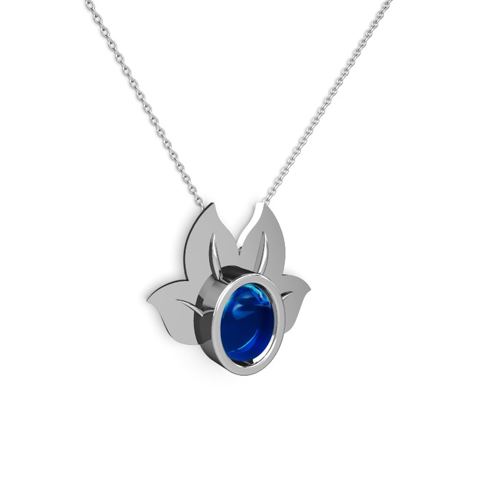 Lab safir 14 ayar beyaz altın kolye (40 cm gümüş rolo zincir)