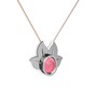 Pembe kuvars 14 ayar beyaz altın kolye (40 cm gümüş rolo zincir)
