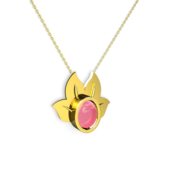 Pembe kuvars 18 ayar altın kolye (40 cm altın rolo zincir)