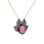 Pembe kuvars 925 ayar siyah rodyum kaplama gümüş kolye (40 cm altın rolo zincir)