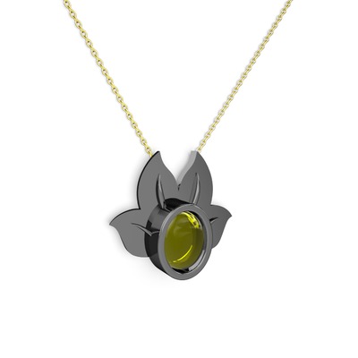 Peridot 925 ayar siyah rodyum kaplama gümüş kolye (40 cm altın rolo zincir)