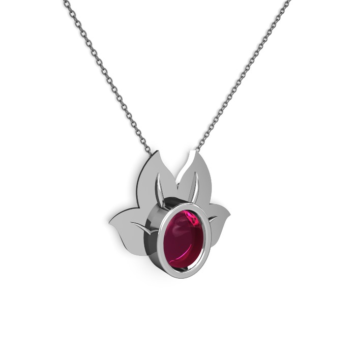 Rodolit garnet 18 ayar beyaz altın kolye (40 cm gümüş rolo zincir)