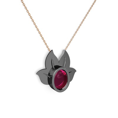 Rodolit garnet 925 ayar siyah rodyum kaplama gümüş kolye (40 cm rose altın rolo zincir)