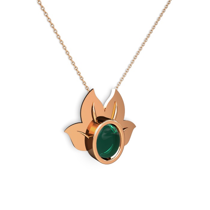 Yeşil kuvars 8 ayar rose altın kolye (40 cm rose altın rolo zincir)