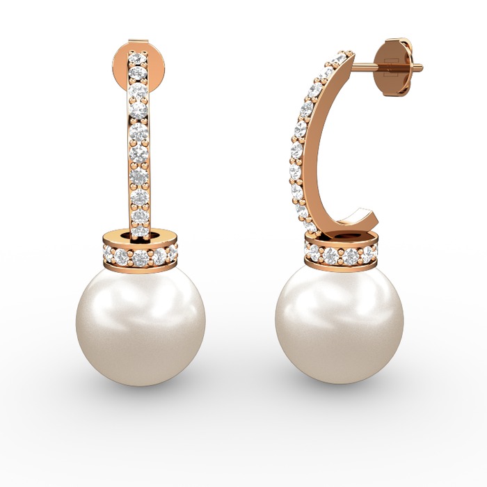 Inci ve beyaz zirkon 925 ayar rose altın kaplama gümüş küpe
