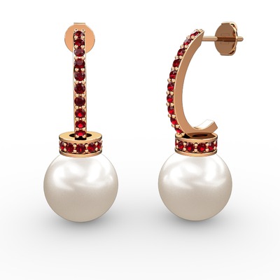Inci ve garnet 14 ayar rose altın küpe