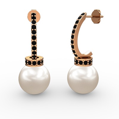 Inci ve siyah zirkon 8 ayar rose altın küpe