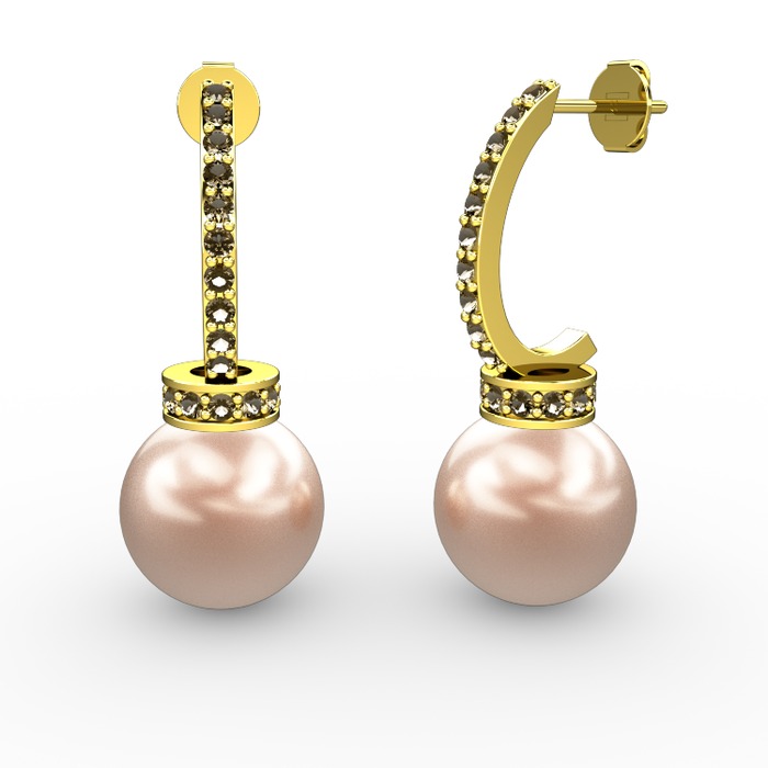 Pembe inci ve dumanlı kuvars 8 ayar altın küpe