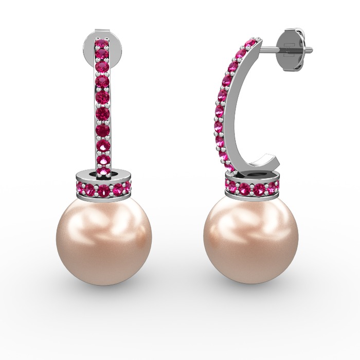 Pembe inci ve rodolit garnet 18 ayar beyaz altın küpe