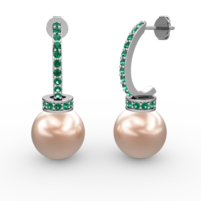 Pembe inci ve yeşil kuvars 14 ayar beyaz altın küpe