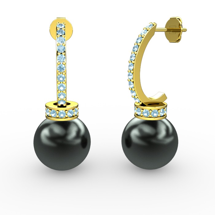 Siyah inci ve akuamarin 925 ayar altın kaplama gümüş küpe