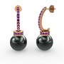 Siyah inci ve ametist 14 ayar rose altın küpe