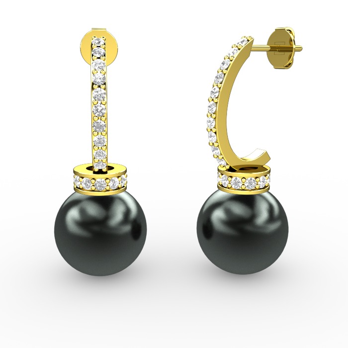 Siyah inci ve beyaz zirkon 925 ayar altın kaplama gümüş küpe