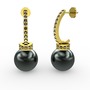 Siyah inci ve dumanlı kuvars 14 ayar altın küpe