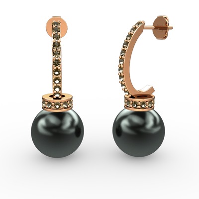 Siyah inci ve dumanlı kuvars 14 ayar rose altın küpe