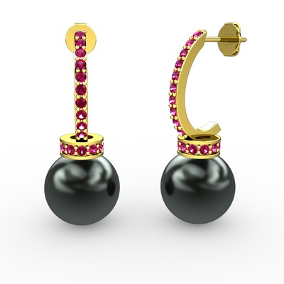 Siyah inci ve rodolit garnet 14 ayar altın küpe