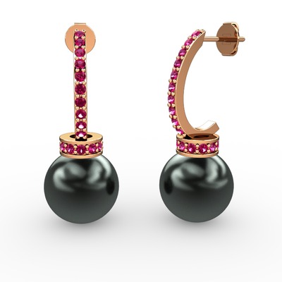 Siyah inci ve rodolit garnet 925 ayar rose altın kaplama gümüş küpe