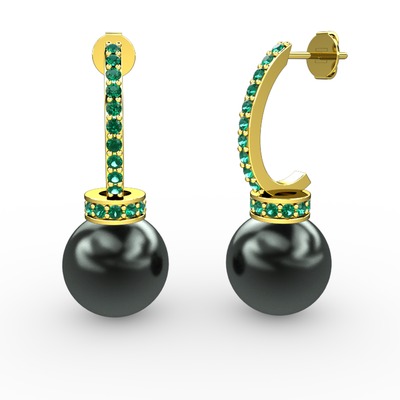 Siyah inci ve yeşil kuvars 18 ayar altın küpe