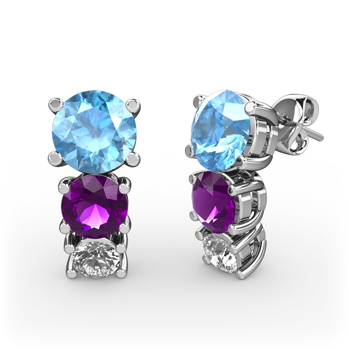 Akuamarin, ametist ve beyaz zirkon 18 ayar beyaz altın küpe
