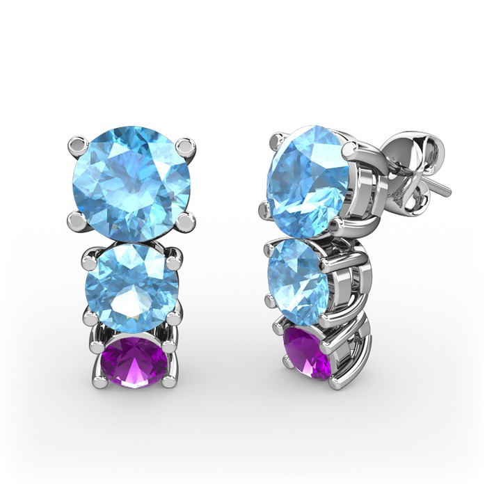 Akuamarin ve ametist 925 ayar gümüş küpe