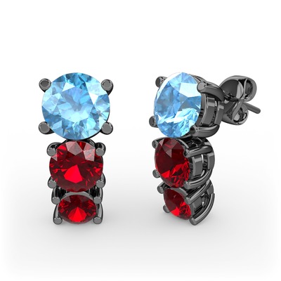 Akuamarin ve garnet 925 ayar siyah rodyum kaplama gümüş küpe