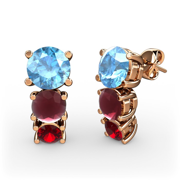 Akuamarin, kök yakut ve garnet 14 ayar rose altın küpe