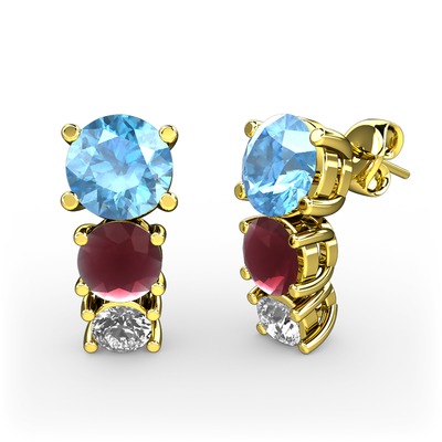 Akuamarin, kök yakut ve swarovski 14 ayar altın küpe