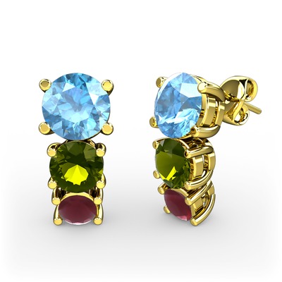 Akuamarin, peridot ve kök yakut 14 ayar altın küpe